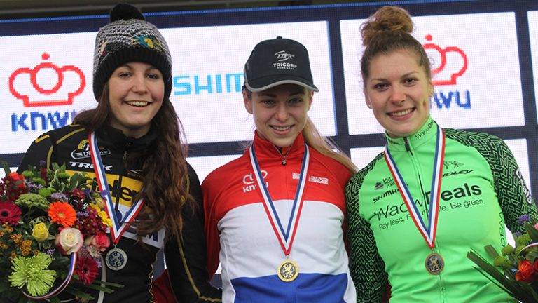 Fleur reed op het Nederlands kampioenschap voor vrouwen beloften in Surhuisterveen naar de tweede plek en de bijhorende zilveren medaille. Onze 20-jarige renster reageerde dan ook enthousiast: “Na een moeilijke periode met ziekte doet deze medaille extra veel deugd. Bovendien geeft dit ook vertrouwen voor de verdediging van mijn leiderstrui in de wereldbeker de komende weekends.”